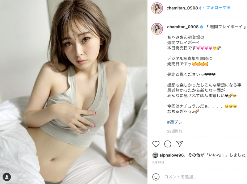 今年6月、週プレでデジタル写真集「「身長175㎝、令和の白ギャル五箇条」を発売、セクシーな姿を披露している(ゆうちゃみ インスタより)