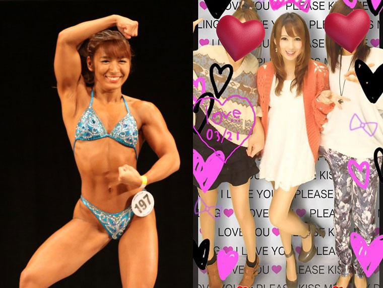 筋肉アイドル才木玲佳のトレーニングの努力が分かる画像。右が20歳(才木玲佳Twitterより)で、左が現在(女子フィジークの部準優勝)