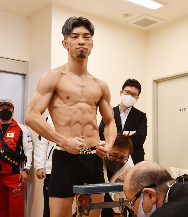 田中恒成がバキバキの筋肉&腹筋で計量パス