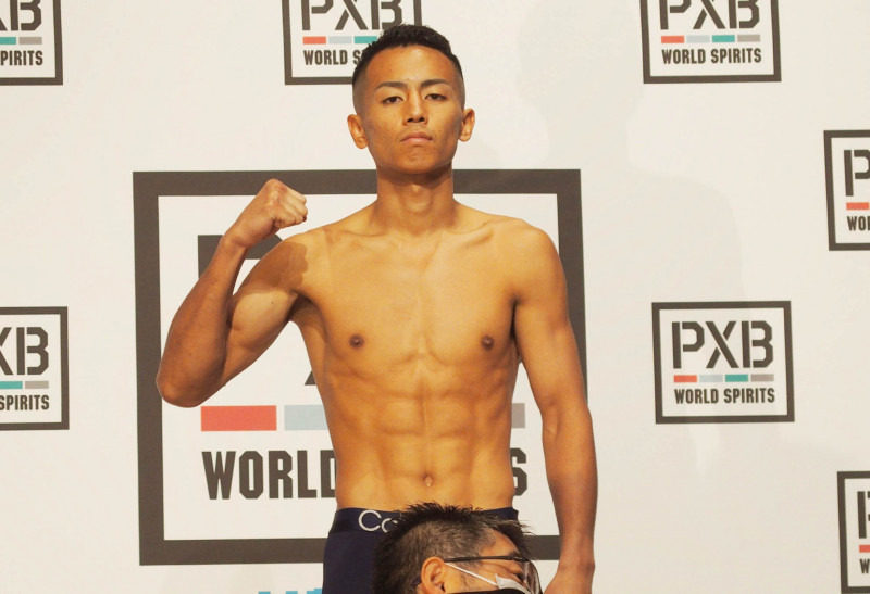 武居が計量パスのマッスルポーズ