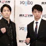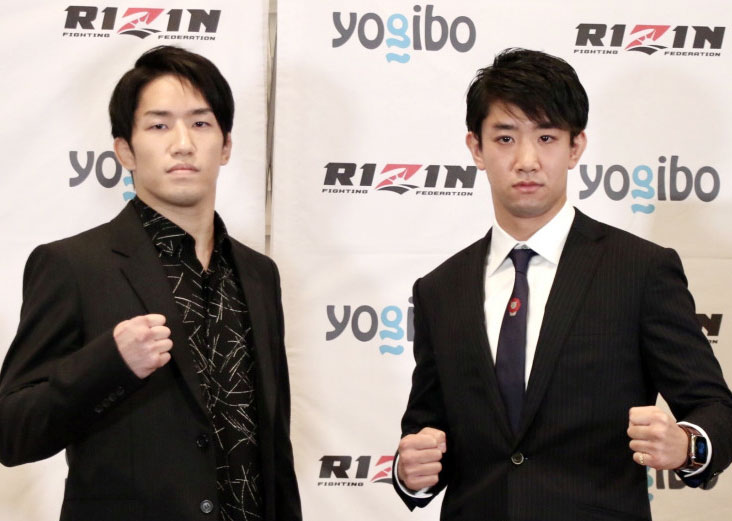 対戦カード発表会見での瀧澤(右)と朝倉海