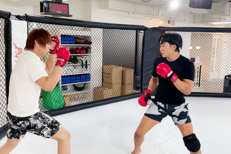 朝倉未来とプロレスラー井土(左)が練習&スパーを行った(朝倉未来YouTubeサムネイルより)