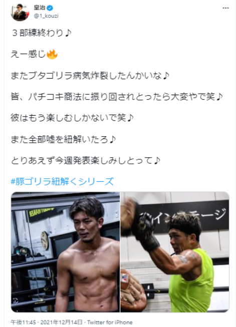 皇治は自身のTwitterでシバターの逃げた発言に反論