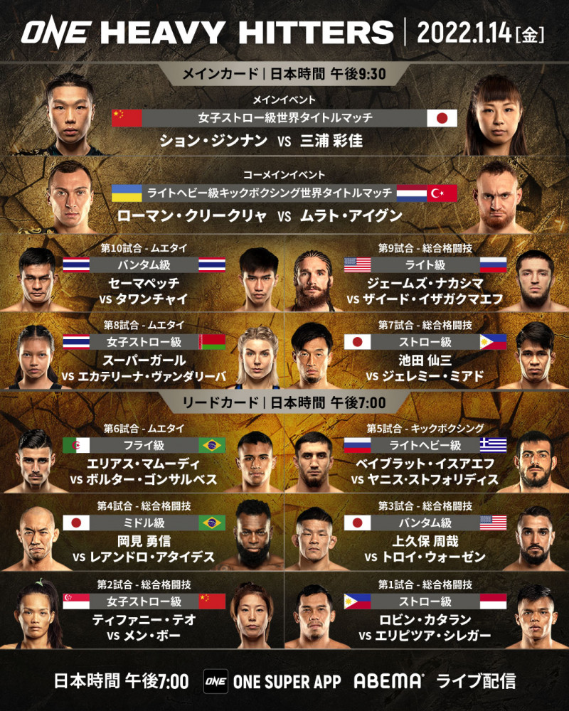 ONEチャンピオンシップ、2022年開幕大会の豪華対戦カード!©️ONE