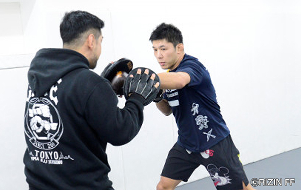 斎藤はサウスポー構えで練習を公開した(C)RIZIN FF