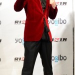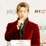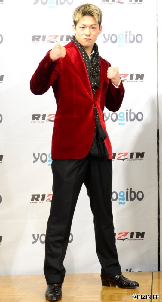 対戦カード発表会見では派手な赤スーツ姿で登場した三浦