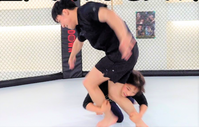 朝倉海と須﨑優衣がレスリング対決!高速タックルを決める須崎(KAI Channel / 朝倉海サムネイルより)