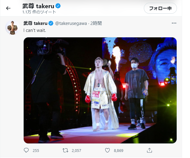 武尊は、自身のTwitterに「待ちきれない」と書き込んだ