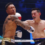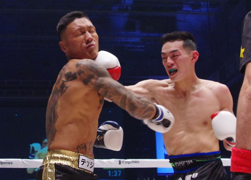 鬼気迫る表情でパンチをヒットさせる中野(右)