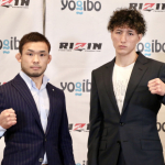 準決勝で対決する、扇久保(左)と井上(対戦カード発表会見での写真)