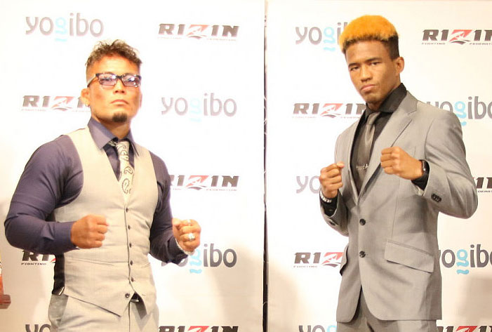 DEEP王者の武田(左)とRISE王者のベイノアが激突する(対戦カード発表会見での写真)