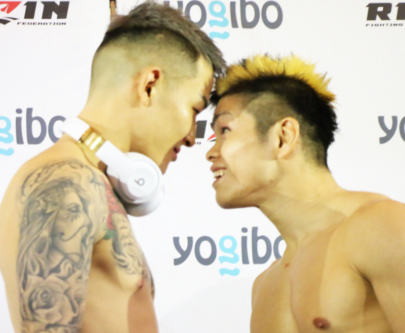 バチバチの睨み合いをする萩原(左)と鈴木(右)