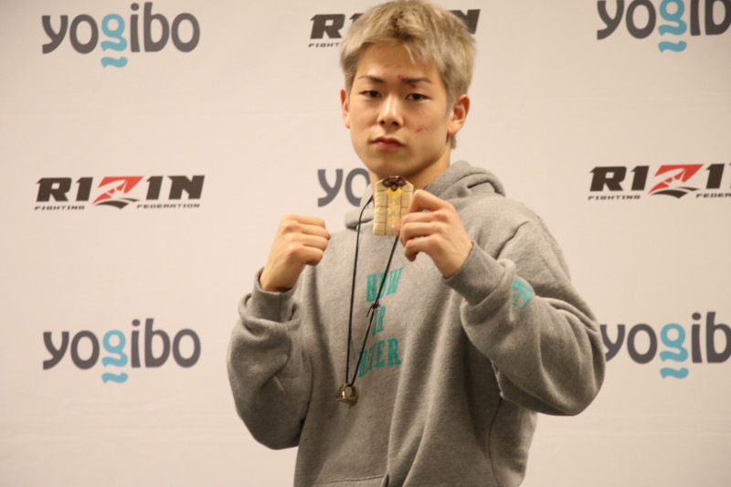 帝釈天のお守りを持って微笑む三浦。プロ格闘家への道が始まった