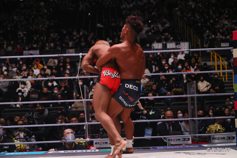 1R、ジャーマンスープレックスを仕掛ける武田