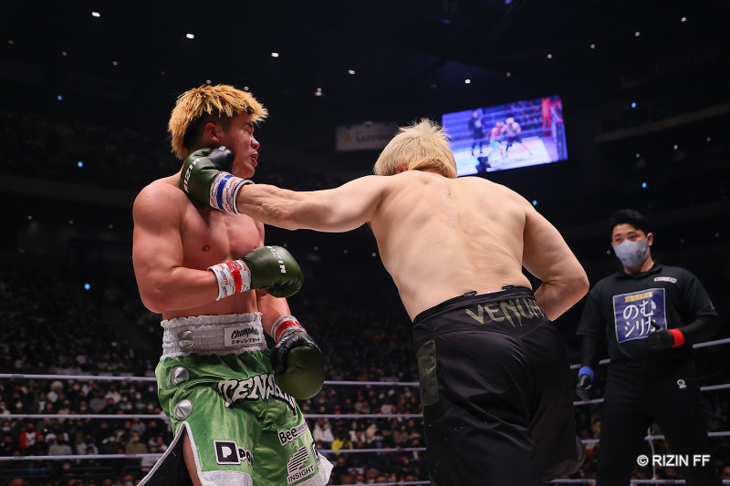 五味のフックが那須川にヒット、ハンマーのようだったと那須川