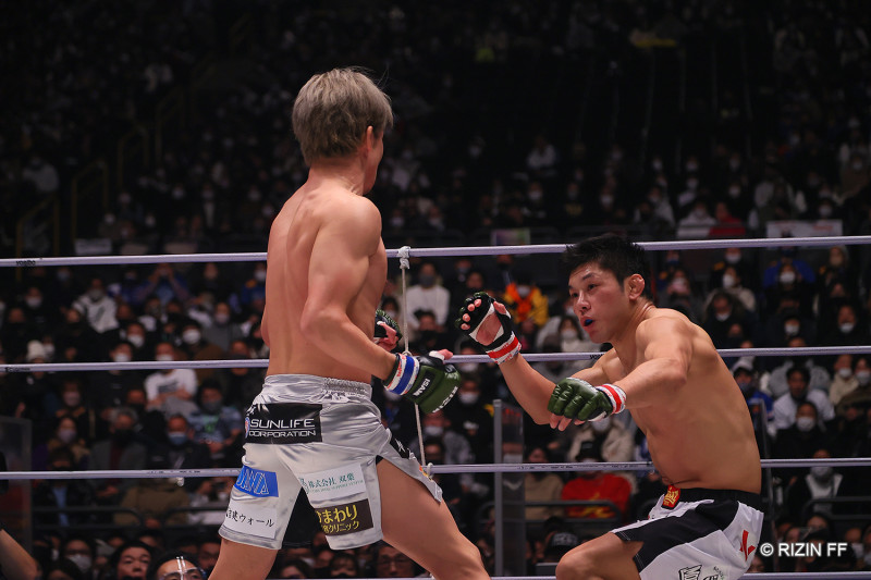 朝倉の打撃にぐらつく斎藤