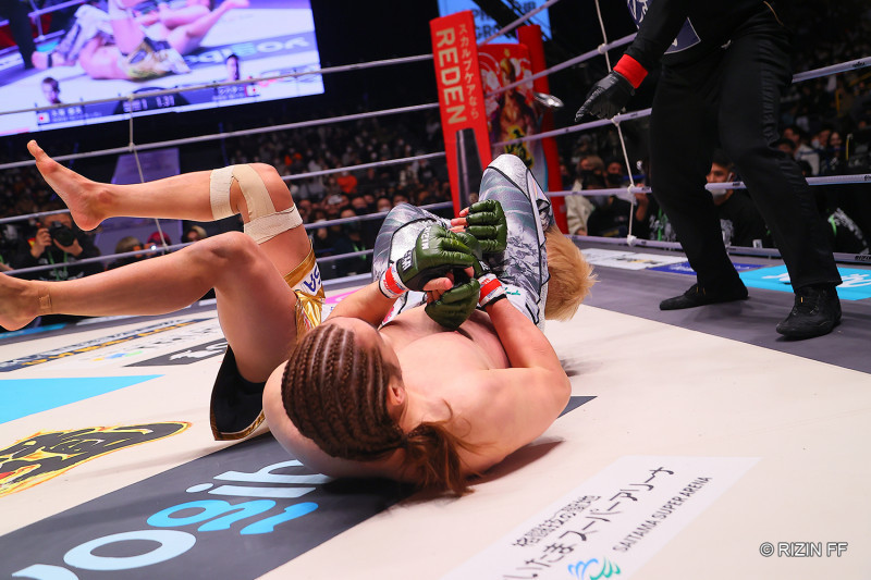 まさかの八百長疑惑!秒殺の腕十字で一本勝ちをするシバター、久保は足をばたつかせる。