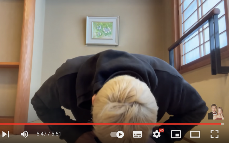 畳に頭がつくほど深々と頭を下げる久保 (サラ久保ちゃんねるより)