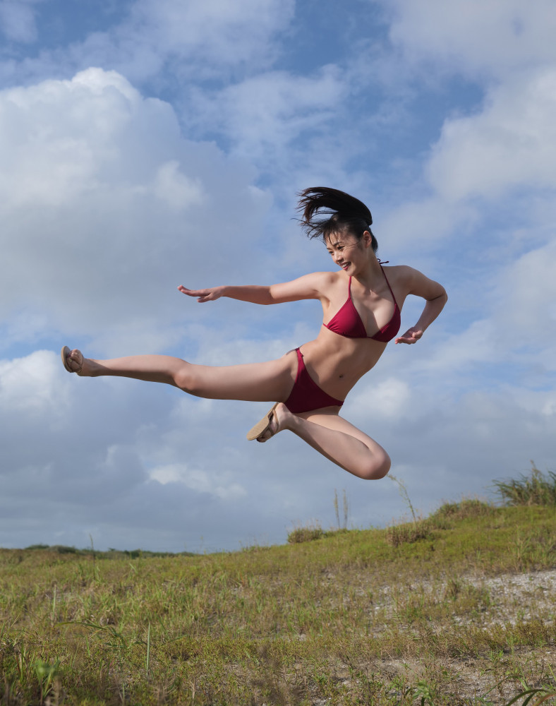 週プレで長野がライダーキック!普段から空手の稽古に励む。目標は空手四段 (C)集英社/週刊プレイボーイ/撮影・藤本和典