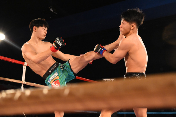 朝倉未来1年チャレンジ・ヒロヤに空手仕込みの上段蹴りを繰りだす原