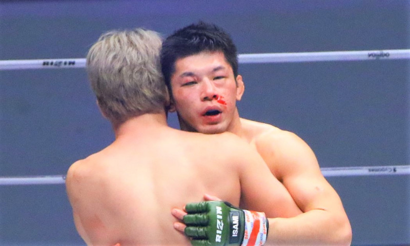 朝倉戦直後に健闘を称え合う斎藤。鼻血が止まらなかった