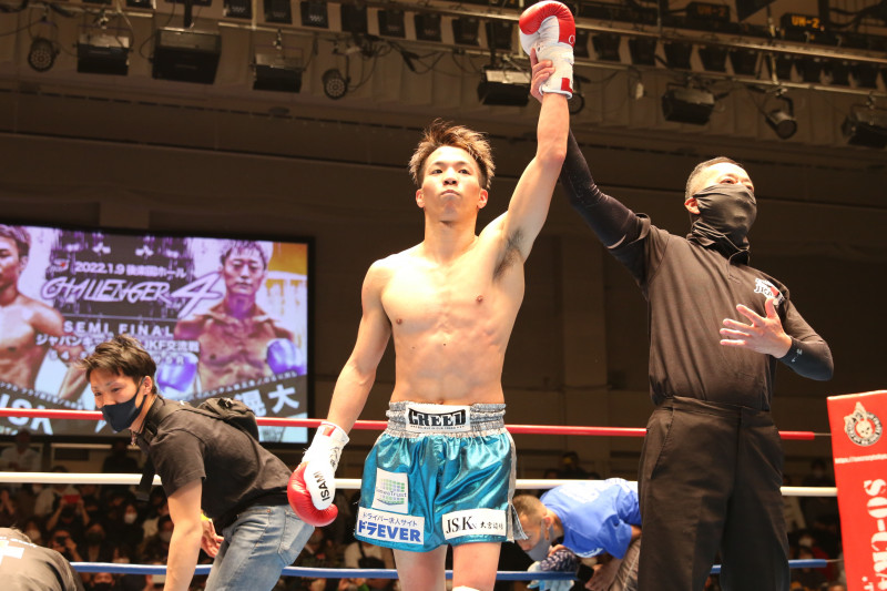 勝ち名乗りを受ける麗也は、石井一成へのリベンジ戦をアピールした