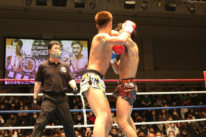 馬渡が二度目のダウンを奪った左ヒジ打ち。カウンターで入った