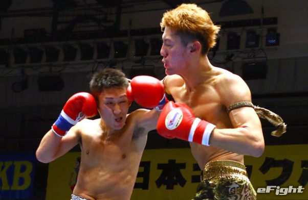 壮絶な怒突き合いを制し1R KOで王座を防衛した髙橋(右・17年12月)