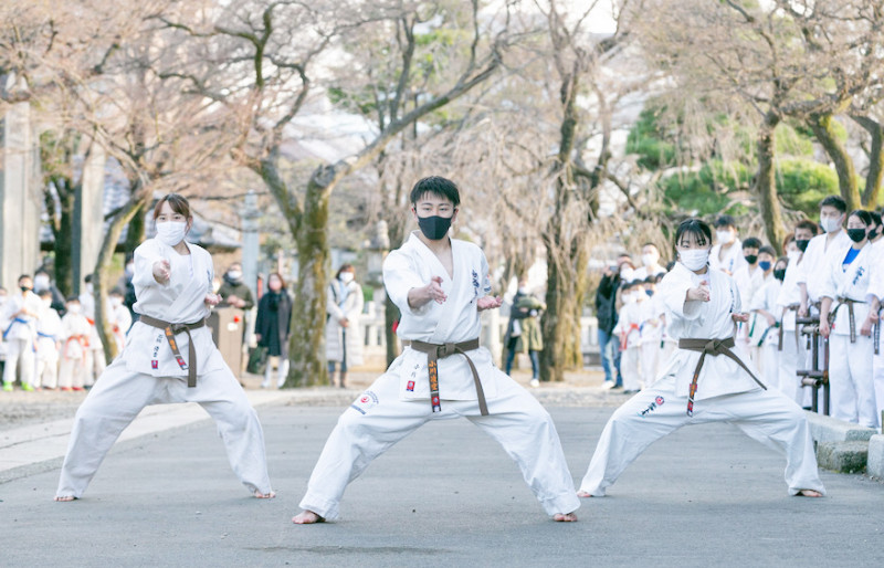 護国寺での新極真の鏡開きに220名が参加、奉納演舞を行う選手たち(c)shinkyokusinkai