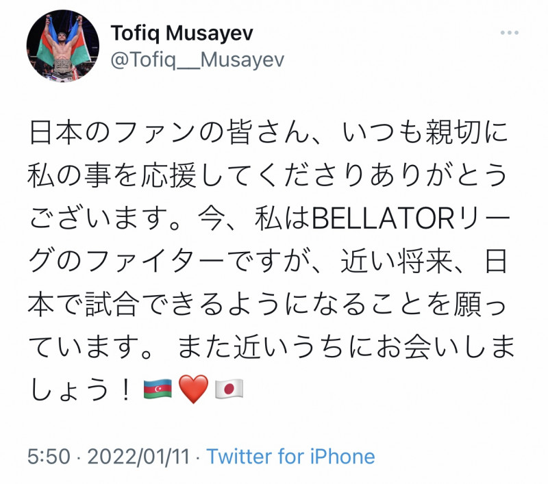 ムサエフがベラトール参戦に向け日本のファンへメッセージ @Tofiq__Musayev
