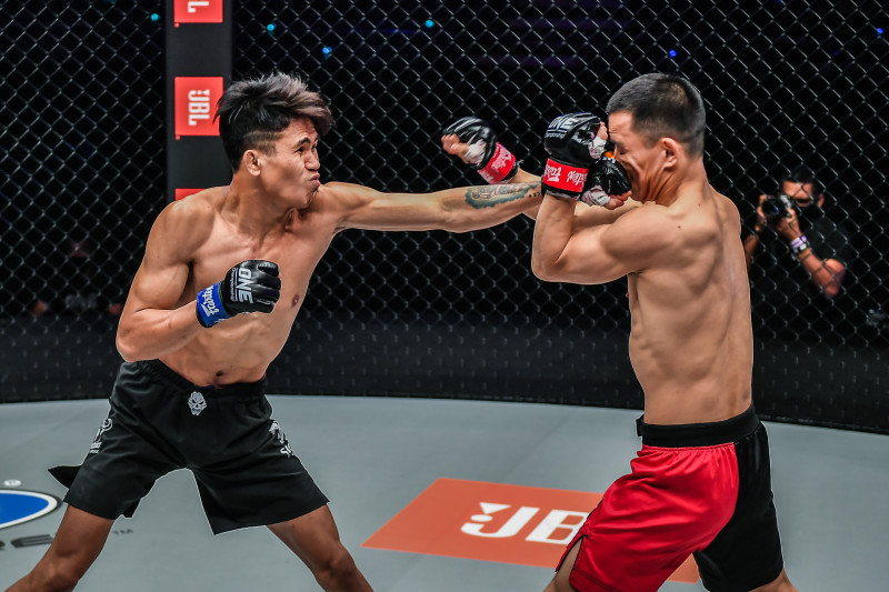 ストライカー・ミアドのストレートが相手の顔面をえぐる