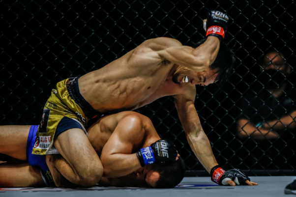 バックからパウンドを落としまくる仙三=20年12月(c)ONE