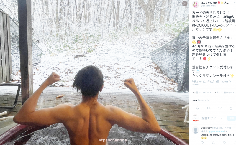 ぱんちゃんが露天風呂でマッスル背筋!「背中の子鬼を爆発させる」と二階級制覇宣言(ぱんちゃん瑠奈ツイッターより)