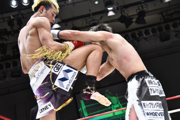 飛びヒザをクリーンヒット、TKO勝利した池田=昨年11月