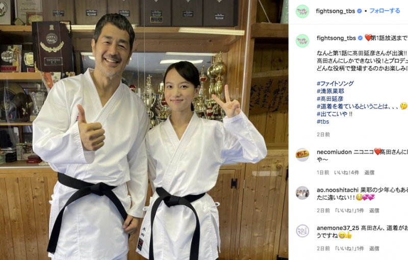TBSドラマ『ファイトソング』で共演した清原果那と髙田延彦が、『ファイトソング』公式インスタグラムで道着姿を公開