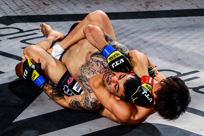 リアネイキッドチョークで一本勝ちする平良(2021年11月)