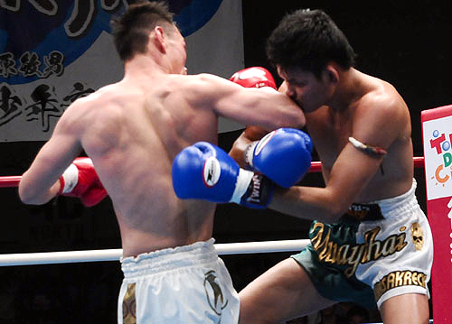 2014年の大会で、森井洋介がバックハンドエルボーでKOする瞬間