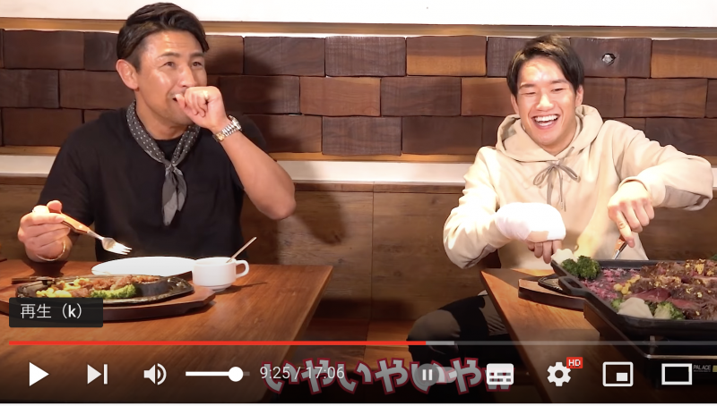 朝倉海が右手のギブスをしながら魔裟斗とステーキ対談。(朝倉海YouTubeより)