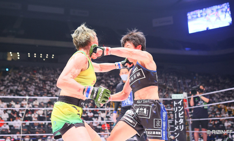 流血の大激突!藤野(左)と浜崎(右)が殴り合う