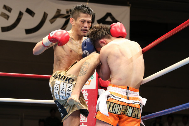 得意のヒザ蹴りでKOする石川