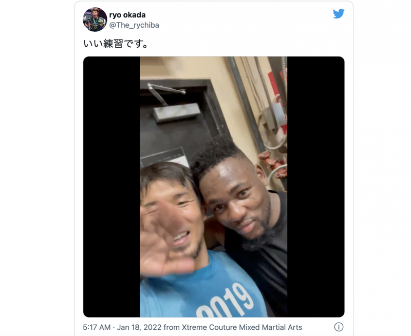 現在、岡田はアメリカでマネル・ケイプとも練習を行う(岡田遼Twitterより)
