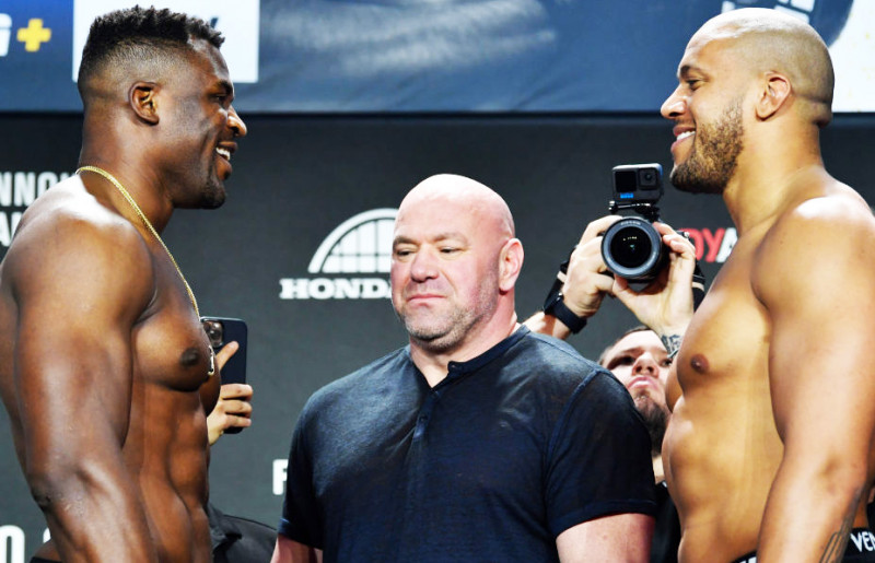 笑顔でフェイスオフするガヌー(左)とガーヌ(右)©️UFC