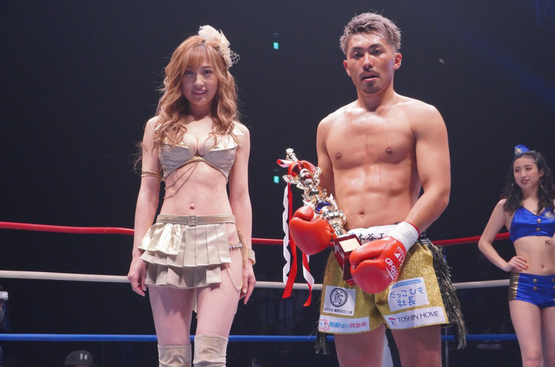 熊田曜子は村越優汰(右)の試合でラウンドガールを務めた