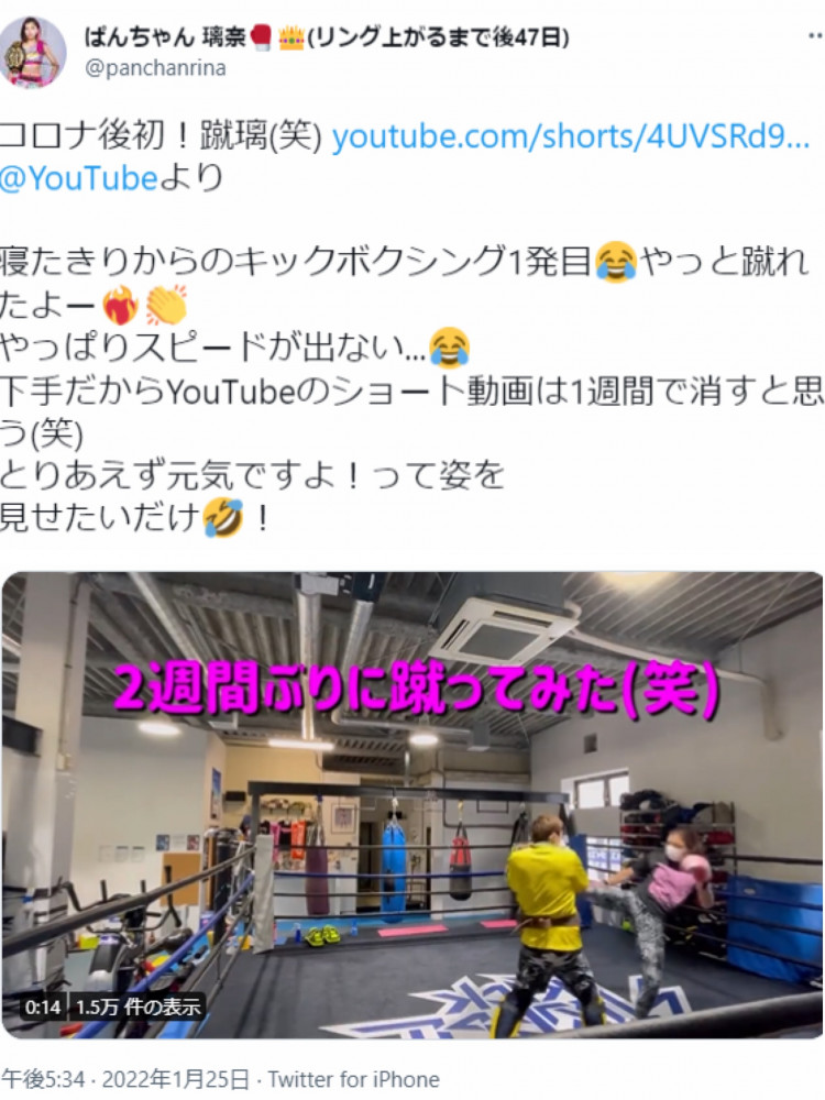 ぱんちゃんは自身のTwitterで初練習動画をアップした