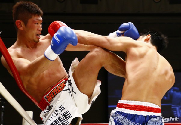 挑戦者としてタイトルマッチへ挑んだ牧平(左/2018年2月)