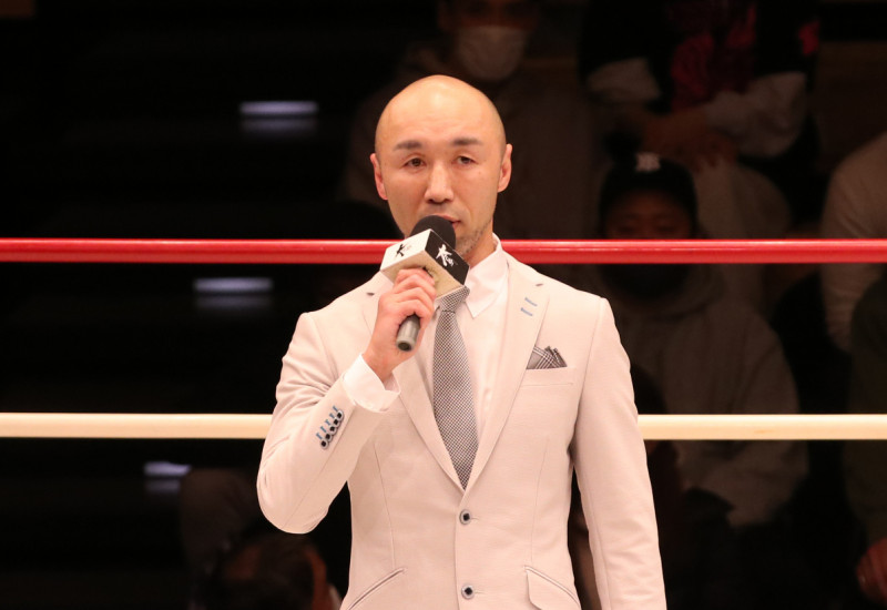 山内が集まったファンに対して感謝の言葉を述べ、リングを降りた