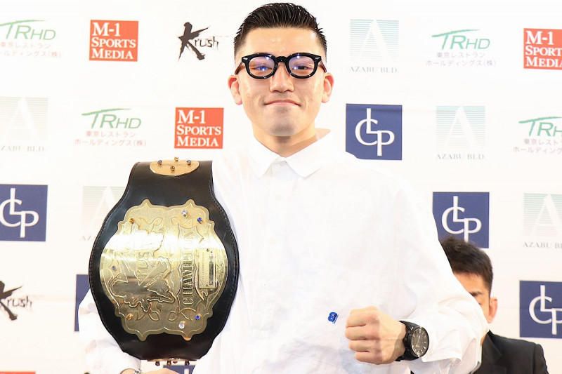 一夜明け会見に出席したKrushスーパー・フェザー級王者となった中島千博(C)K-1