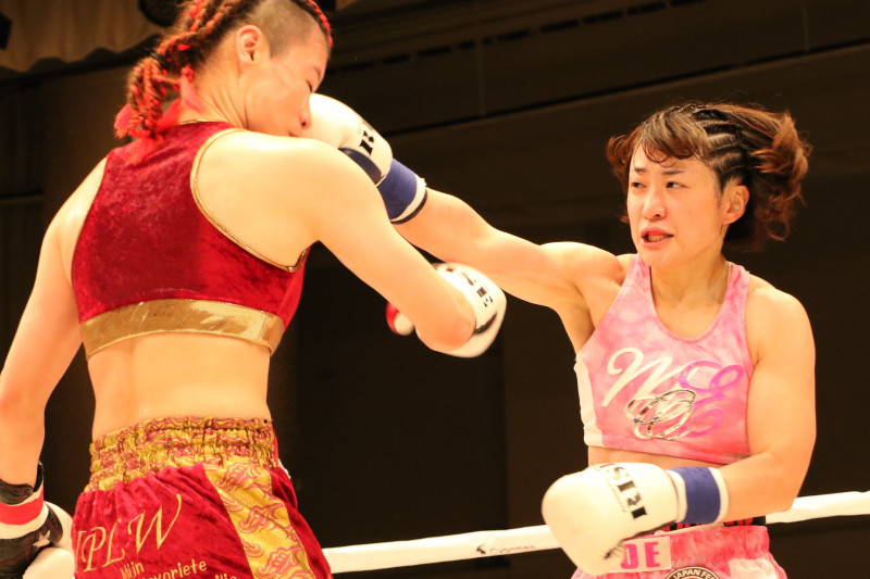 大倉萌が、元ボクシング世界王者・山本ユノカにパンチを当てる瞬間