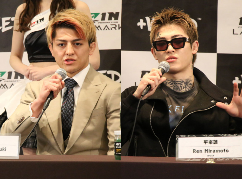 会見に登壇した平本蓮(右)と鈴木千裕