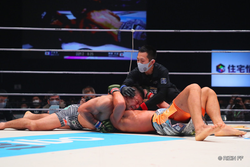ノースサウスチョークで一本勝ちを決めたアキラ©️RIZIN